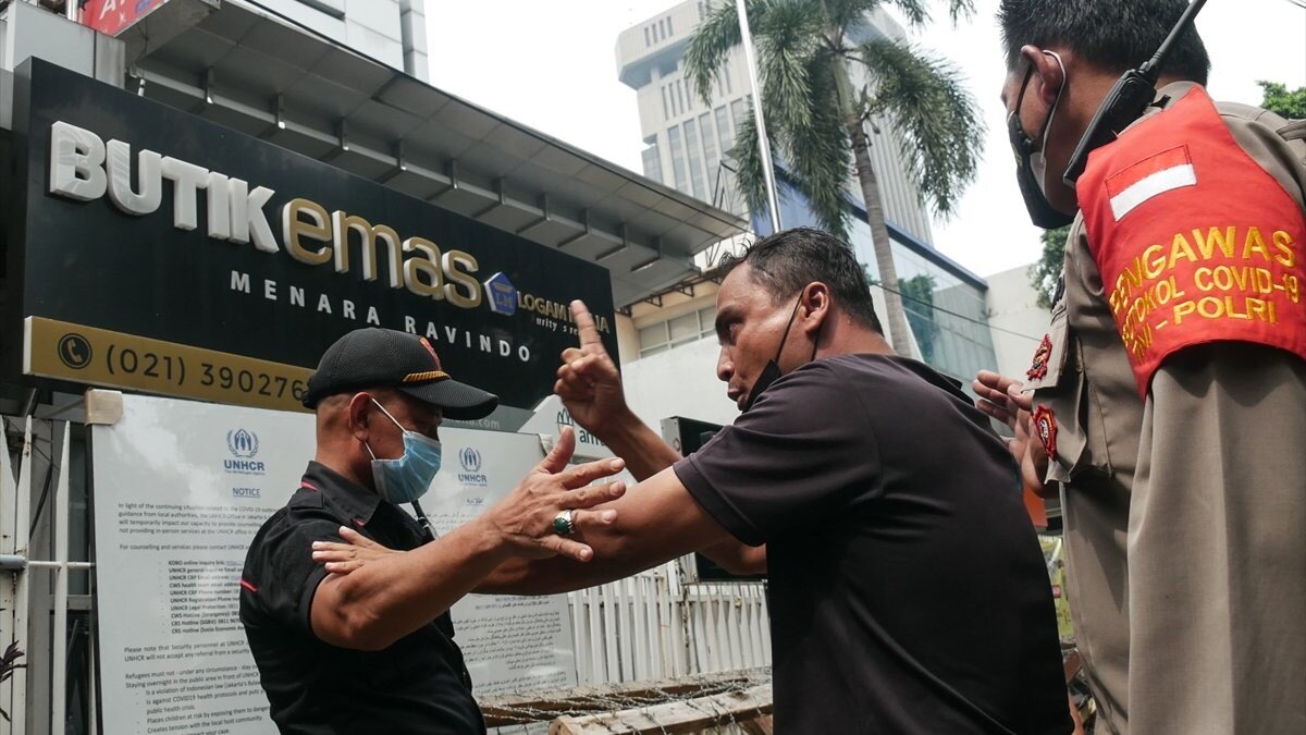 Yeniden yerleştirme programı isteyen Afgan mülteciler, Mülteci Komiserliği önünde güvenliği sağlamaya çalışan görevlilerce engellenmek istendi.