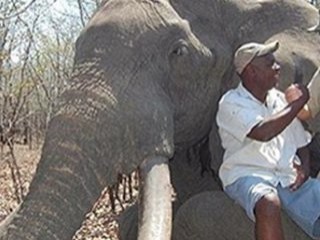 Zimbabwe'nin güneydoğusunda bulunan Gonarezhou Milli Parkı'nda, tecrübeli bir avcının yardımıyla devasa fili öldüren ve bu anları fotoğraflayan avcı, bu büyüklükteki bir fili öldürmek için gerekli izni almak ve av organizasyonuna katılmak için 60 bin dolar ödedi.