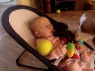 Beagle cinsi bir köpek, bebek ile oyun oynuyordu. Köpek, oyun oynarken aniden bebeğin kucağındaki oyuncağı alıp kaçtı.