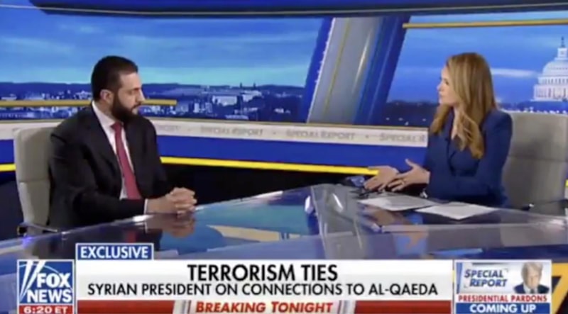 ABD'ye gerçekleştirdiği diplomatik ziyaret sırasında FOX News kanalına röportaj veren Suriye Devlet Başkanı Ahmed Şara, 11 Eylül olaylarına dair 'Pişman mısınız?' sorusuna olayla ilgilisi olmadığını belirterek "Yanlış kişiyle konuşuyorsunuz" dedi.
