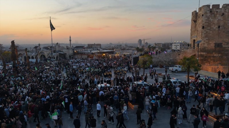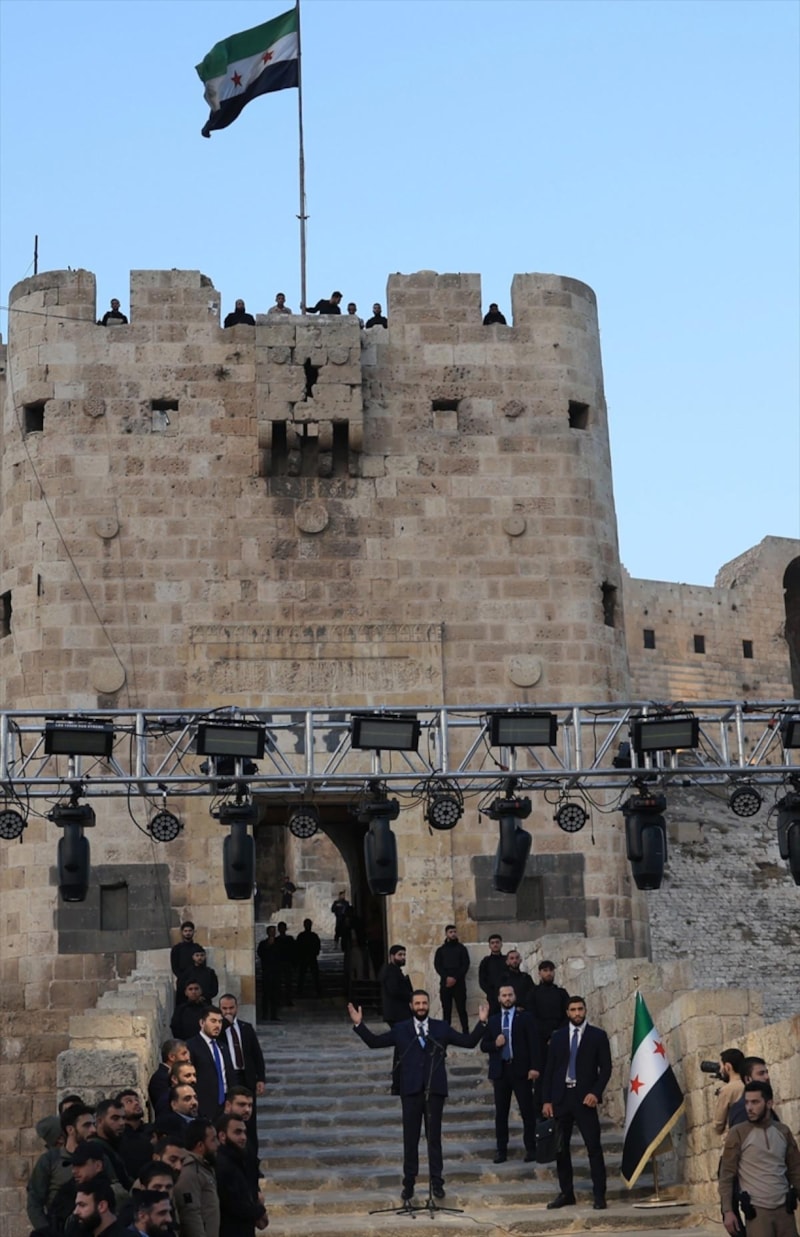 Şara, kentin stratejik önemine dikkat çekerek, “Halep Kalesi bu sürecin en güçlü sembolüdür. Halep’le birlikte tüm Suriye yeniden doğdu. Halep, tüm Suriye’ye açılan kapımızdı. Halep’in zinciri kırılınca hapishaneler özgürleşti, Suriye’nin çocuklarının yüzü yeniden güldü” diye konuştu.