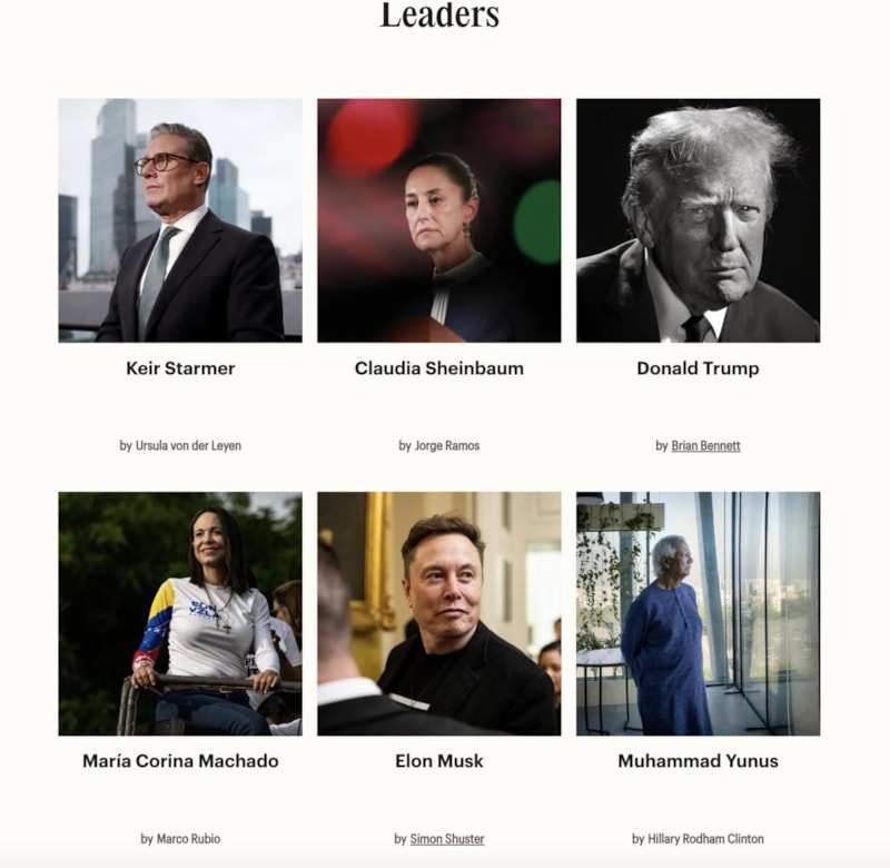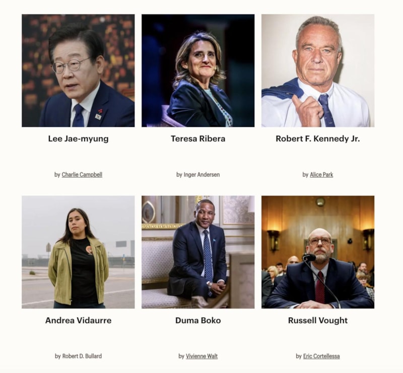 Demis Hassabis, Rosé, Andrew Forest, Robert Montgomery, Breanna Stewart & Napheesa Collier, Robin Wall Kimmerer, Dorio Amodei, Myles Smith, Cordelia Bähr, Julie Burkhart, Liang Wenfeng, Allison Sesso, Tomas Cihlar, Wesley Sundquist.