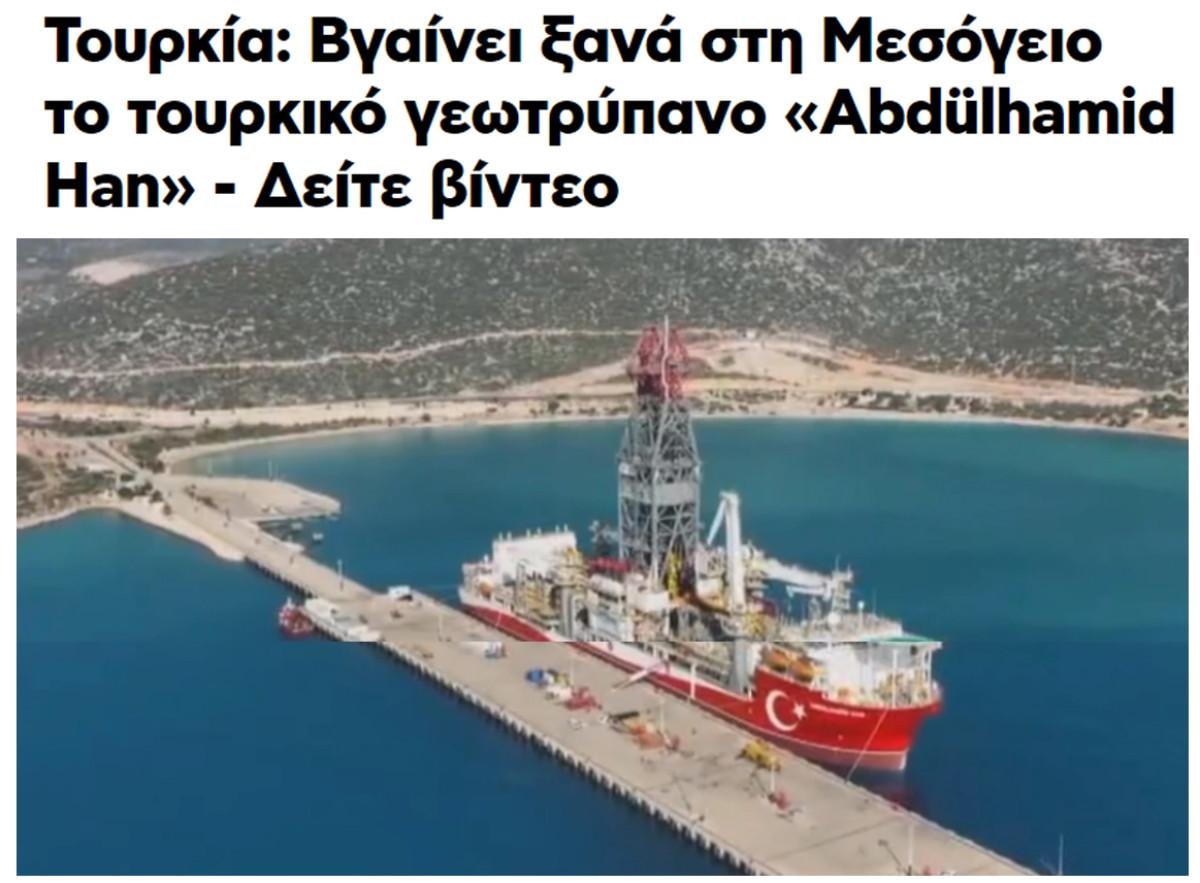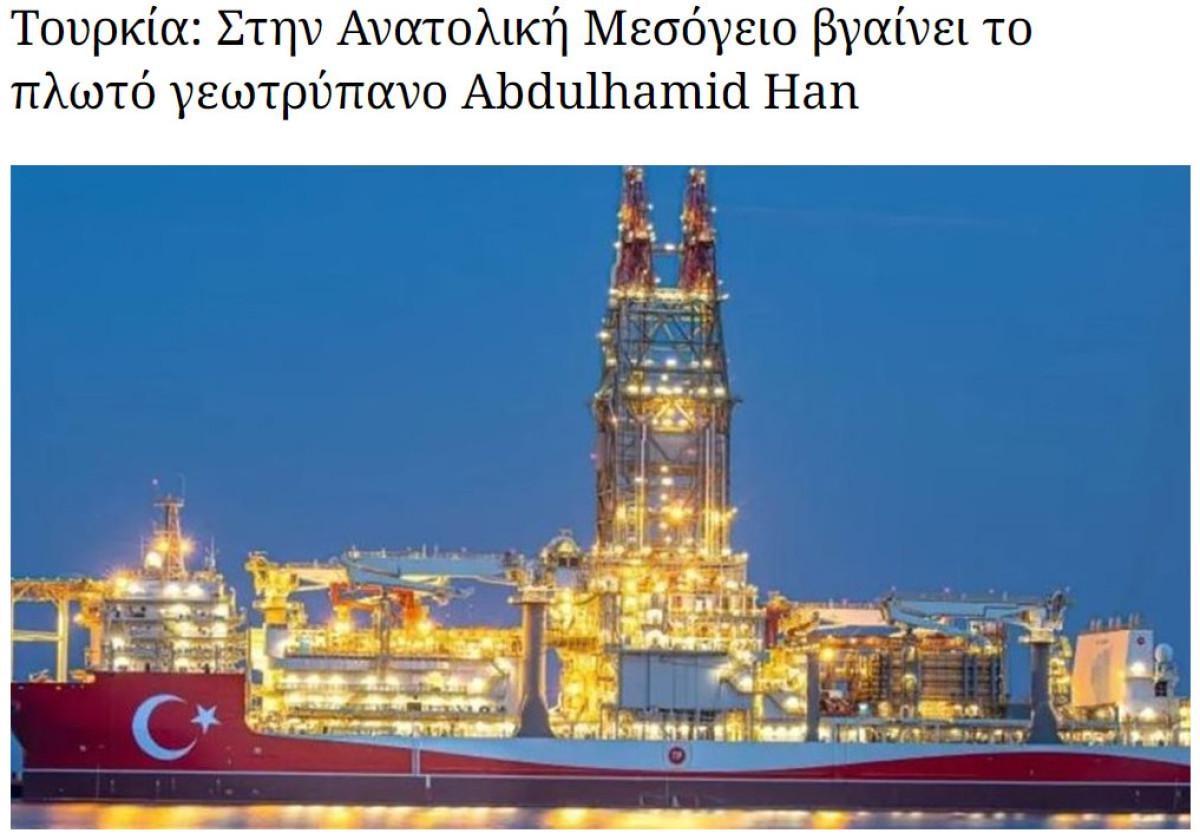 Gemiyle ilgili bir habere de SKAI televizyonu imza attı. Cumhurbaşkanı Recep Tayyip Erdoğan'ın, dördüncü sondaj gemisinin adını Abdülhamid Han olarak belirlediği hatırlatıldı.