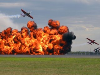 Akrobasi uçakları alevler arasında gösteri yaptı İZLE