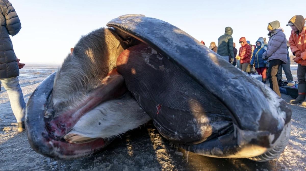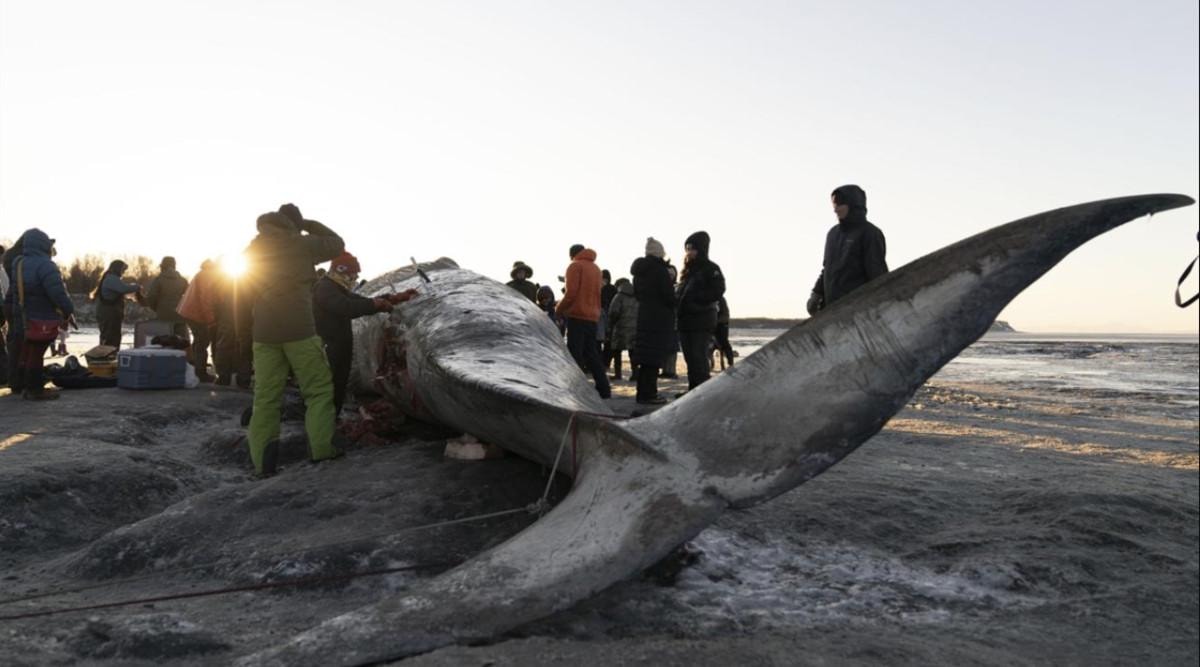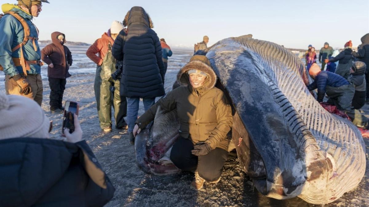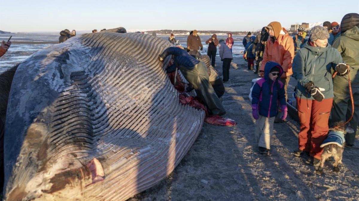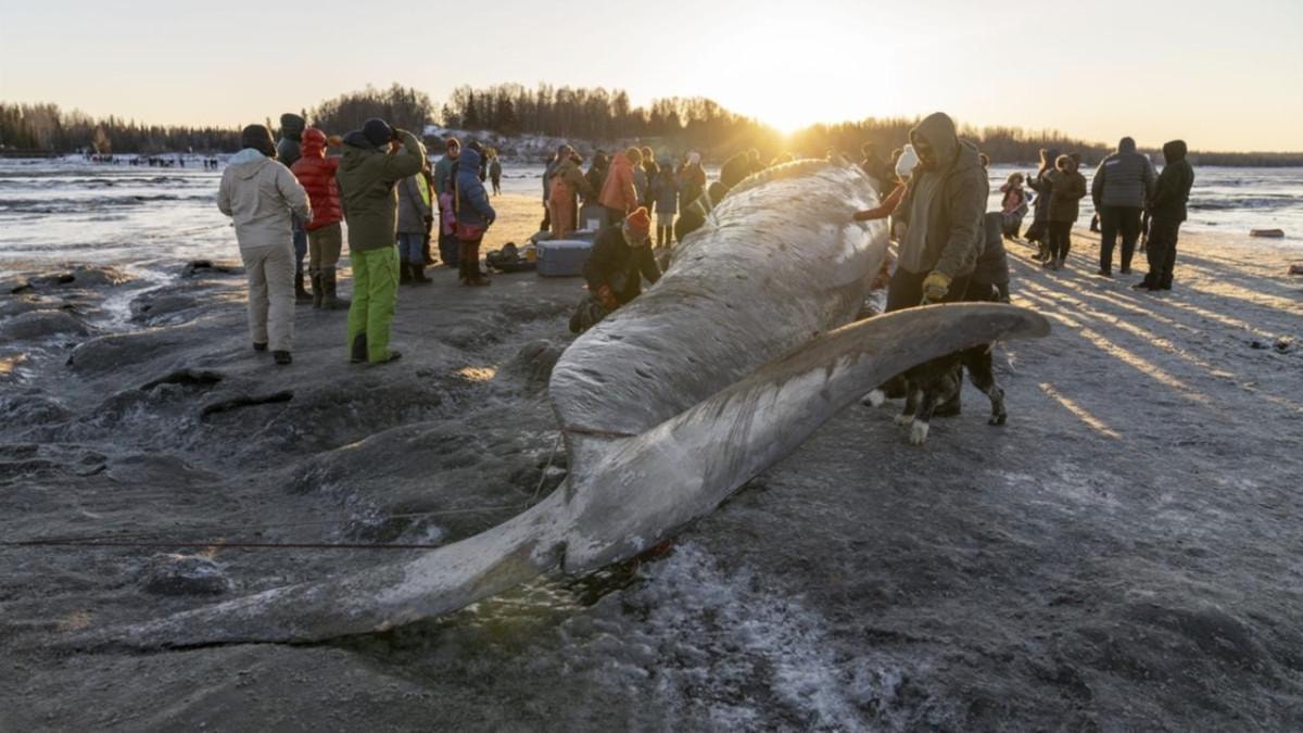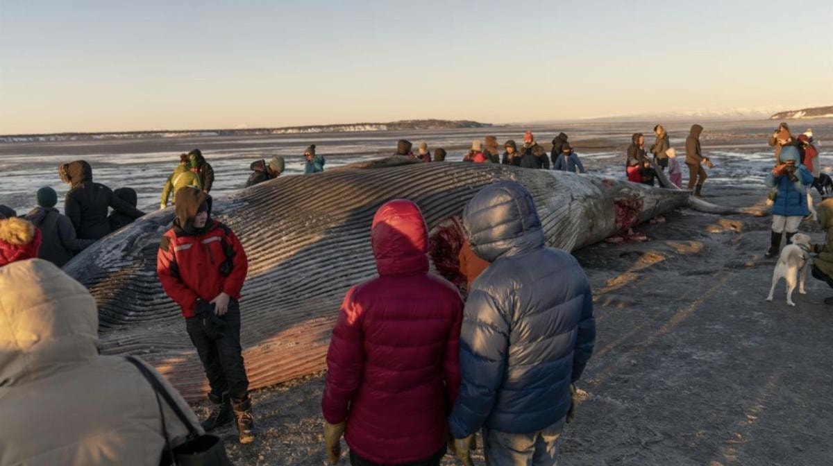 Anchorage kentindeki Cook Inlet sahilinde, dev balina karaya vurdu.