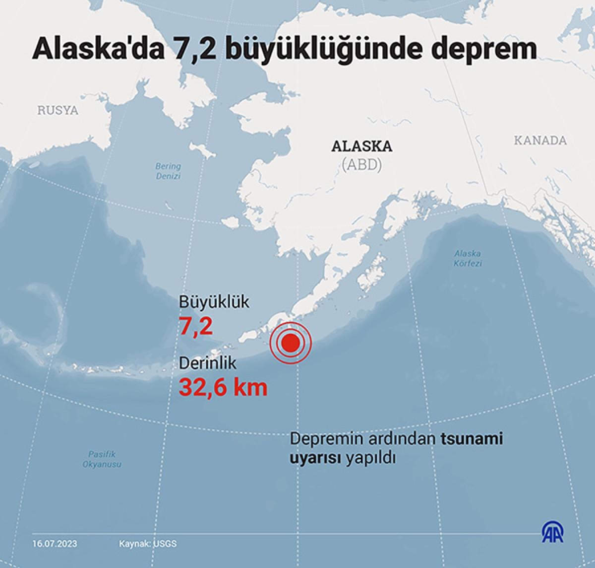 ABD'nin Alaska Yarımadası bölgesinde 7,2 büyüklüğünde deprem yaşandı.