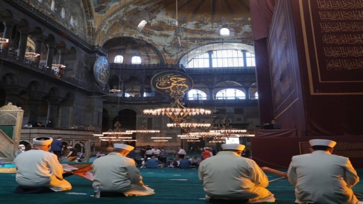 Alman devlet televizyonu ARD, önce kilise daha sonra cami ve son olarak müze statüsünde olan Ayasofya'nın, bugün kılınacak cuma namazı ile tekrar cami statüsü kazanacağını ifade etti.