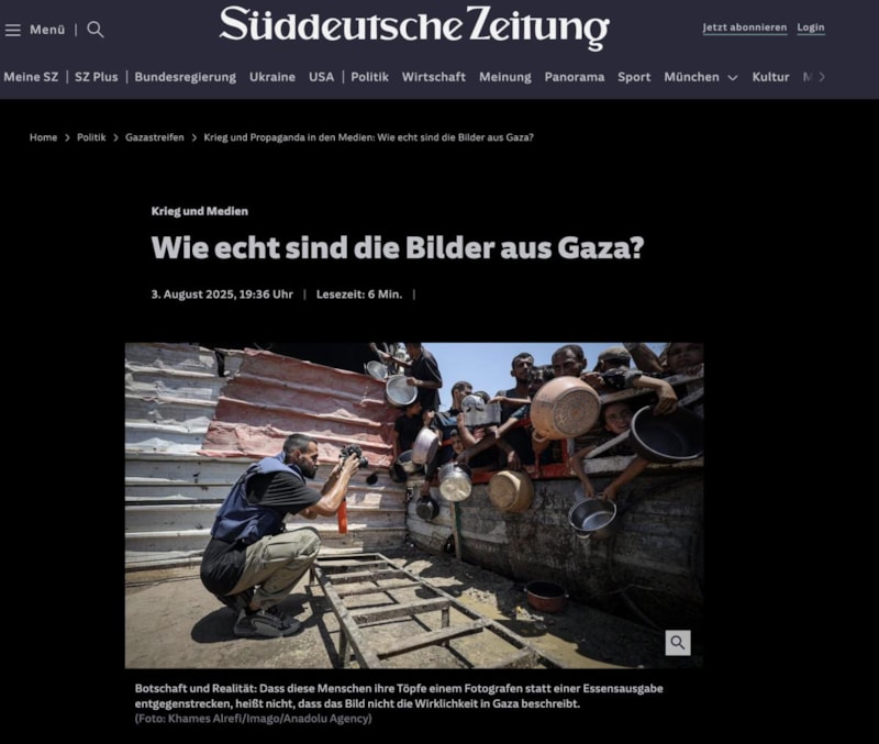 Süddeutsche Zeitung (SZ) ise aynı fotoğrafları "Gazze'den gelen bu görüntüler ne kadar gerçek?" başlığı ile servis etti.