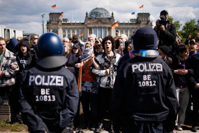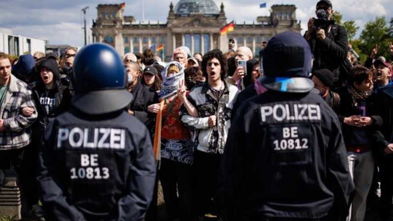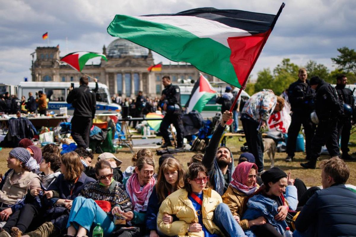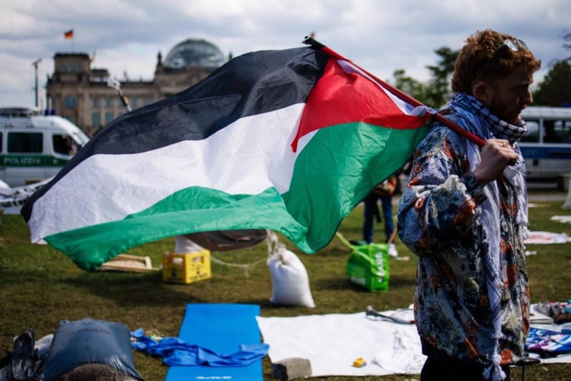 Almanya’nın başkenti Berlin’de, yaklaşık 3 hafta önce İsrail'in Filistin'e düzenlediği saldırıları kınamak ve yaşanan insanlık dramına dikkat çekmek amacıyla bir grup aktivist tarafından Berlin'deki Federal Meclis binası önünde bulunan yeşil alanda Filistin’e destek kampı kurulmuştu.