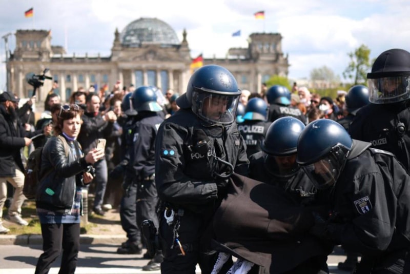 Alman polisi, başkent Berlin’de bulunan Federal Meclis önündeki Filistin’e destek kampını dağıttı.