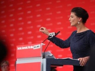Sol Parti Federal Meclis Grubu Eşbaşkanı Sahra Wagenknecht Magdeburg'da yapılan parti kongresi sırasında ırkçı fikirleri ve mülteci karşıtlığı nedeniyle pastalı protestoya maruz kalmıştı.
