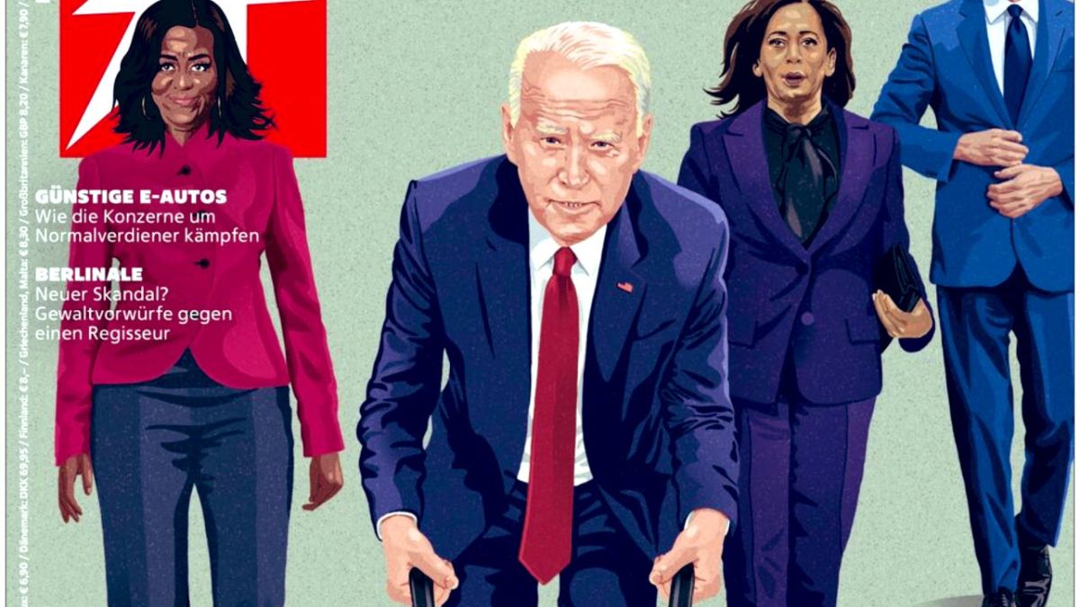 Stern'in 15 Şubat 2024 tarihli sayısında Joe Biden, yürüteçten destek alarak ilerlediği anlarla tasvir edildi.