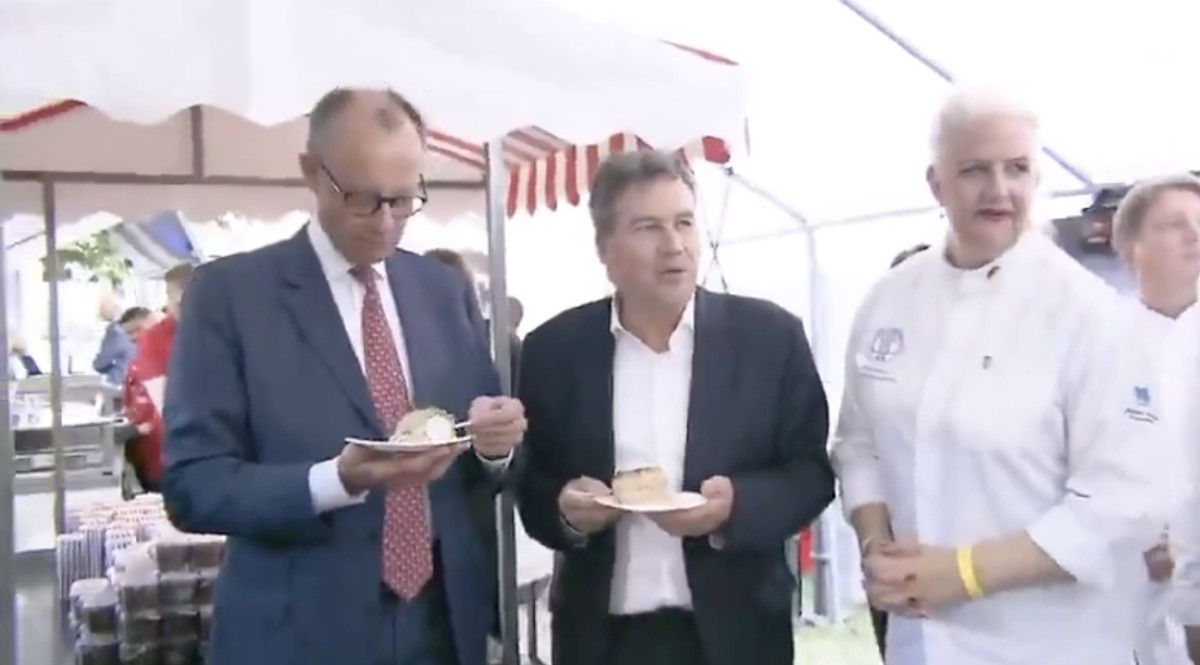 Merz, pastada doğduğu Sauerland seçim bölgesinin tasvir edildiği dilimi kendisi için kesti.