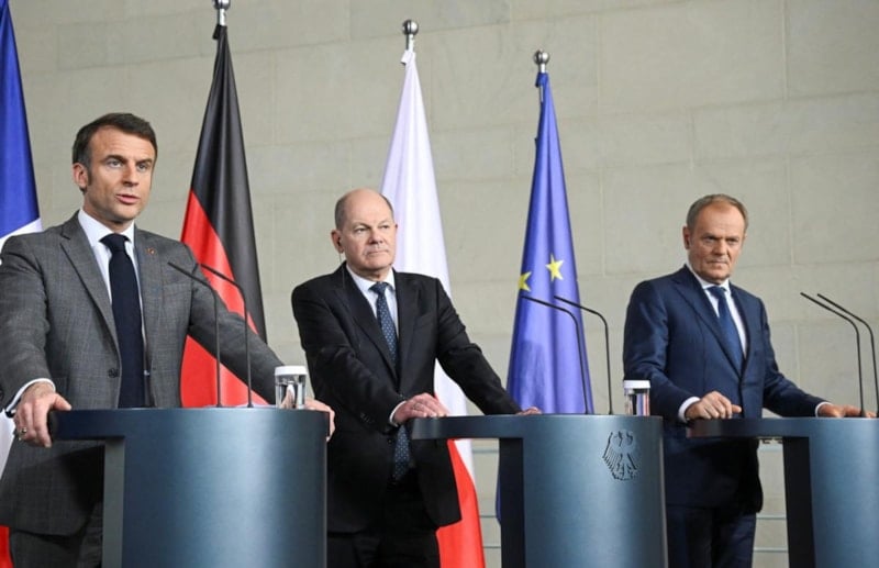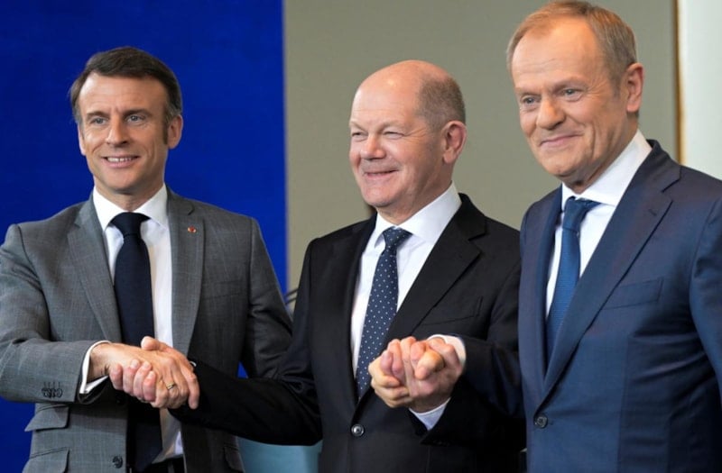 Almanya Başbakanı Olaf Scholz, Weimar Üçlüsünü oluşturan Polonya Başbakanı Donald Tusk ve Fransa Cumhurbaşkanı Emmanuel Macron’u Almanya'nın başkenti Berlin'de ağırladı.