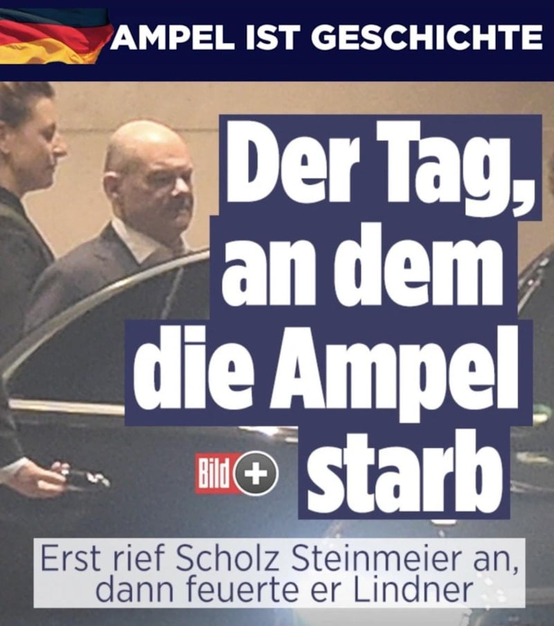 Koalisyonun dağıldığını duyuran Almanya asıllı gazete BILD, "Trafik lambası öldü" başlığıyla verdiği haberinde koalisyonun resmen dağıldığını belirtti.