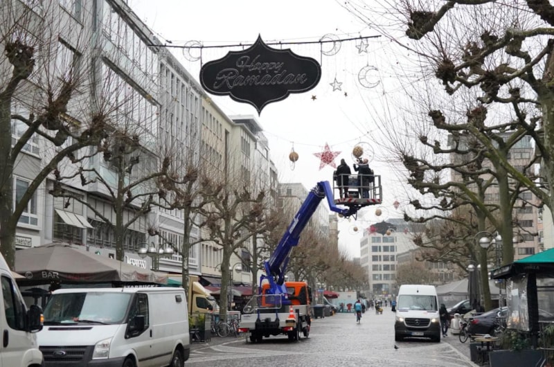 Frankfurt Belediyesi, bir ilke imza atarak Ramazan ayında şehrin en işlek caddelerinden Fressgass'ın iki farklı girişine “Happy Ramadan” (Mutlu Ramazanlar) yazılı ışıklı tabela astı.