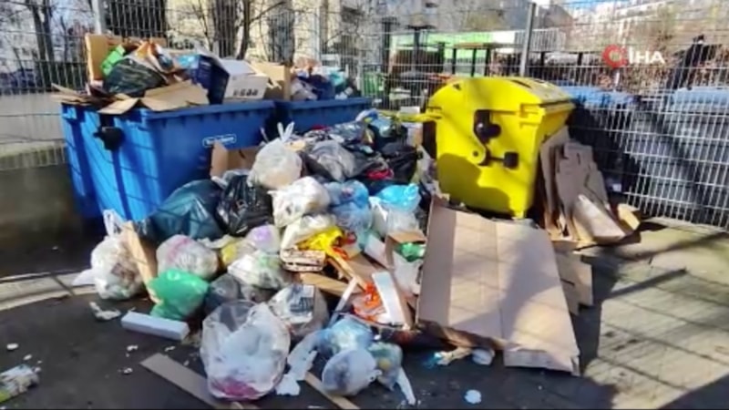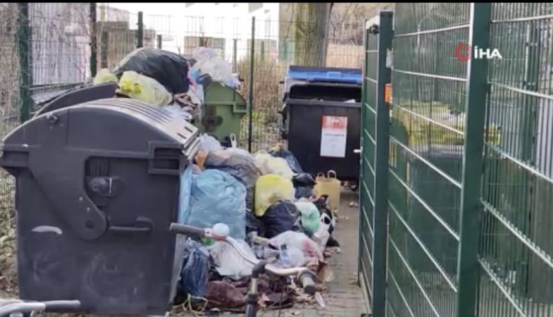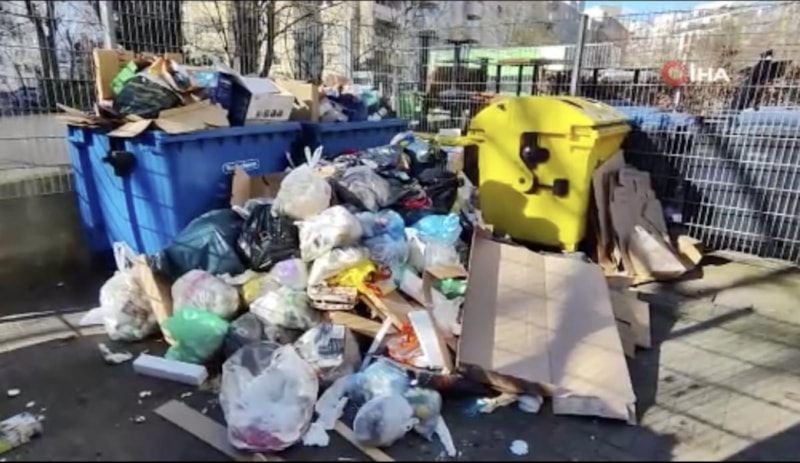 Grev nedeniyle sokaklarda ve çöp kutularının bulunduğu alanlarda çöp yığınlarının oluştuğu görüldü.