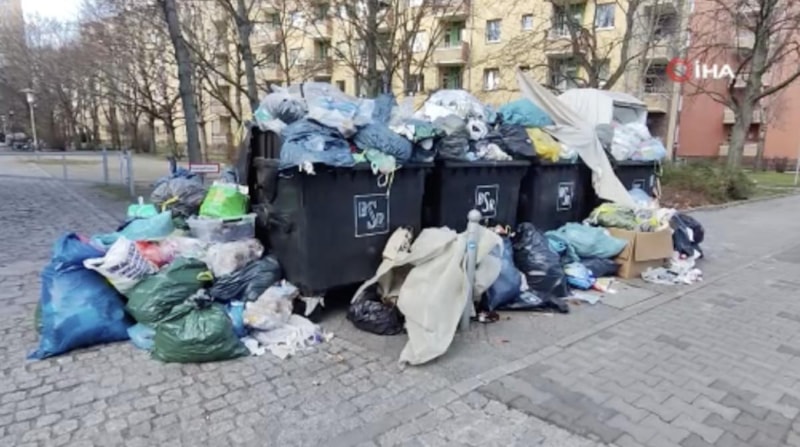 Berlinliler, çöp torbalarını dolup taşan çöp kutularının çevresine bıraktı. Toplanmayan çöplerin yaydıkları kötü kokunun yanı sıra çeşitli sağlık sorunlarına neden olabileceği de açıklandı.