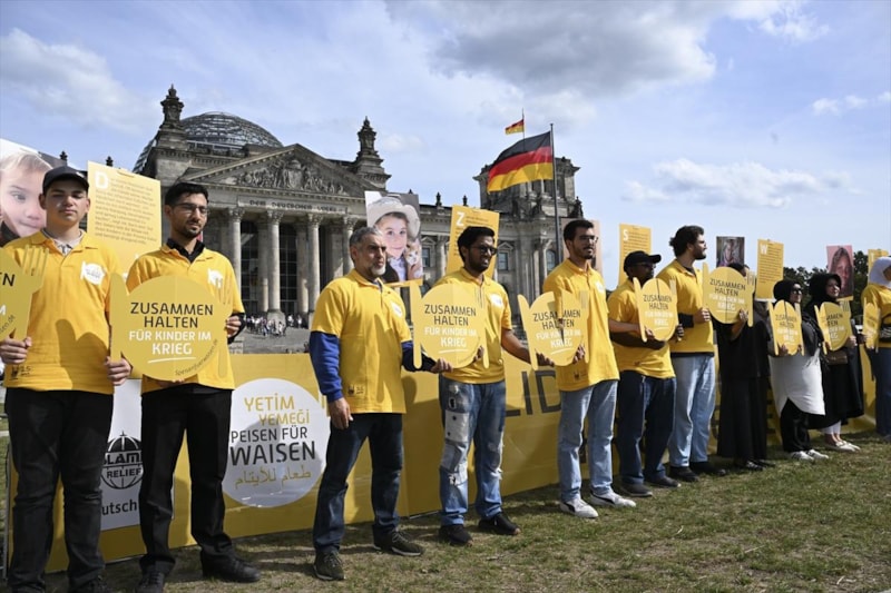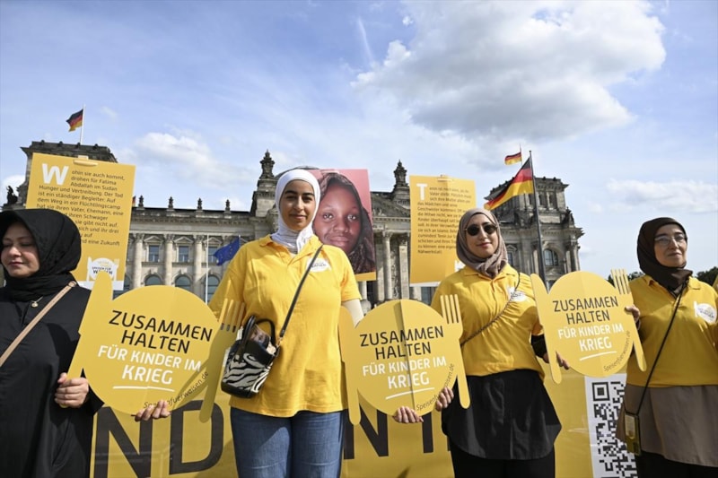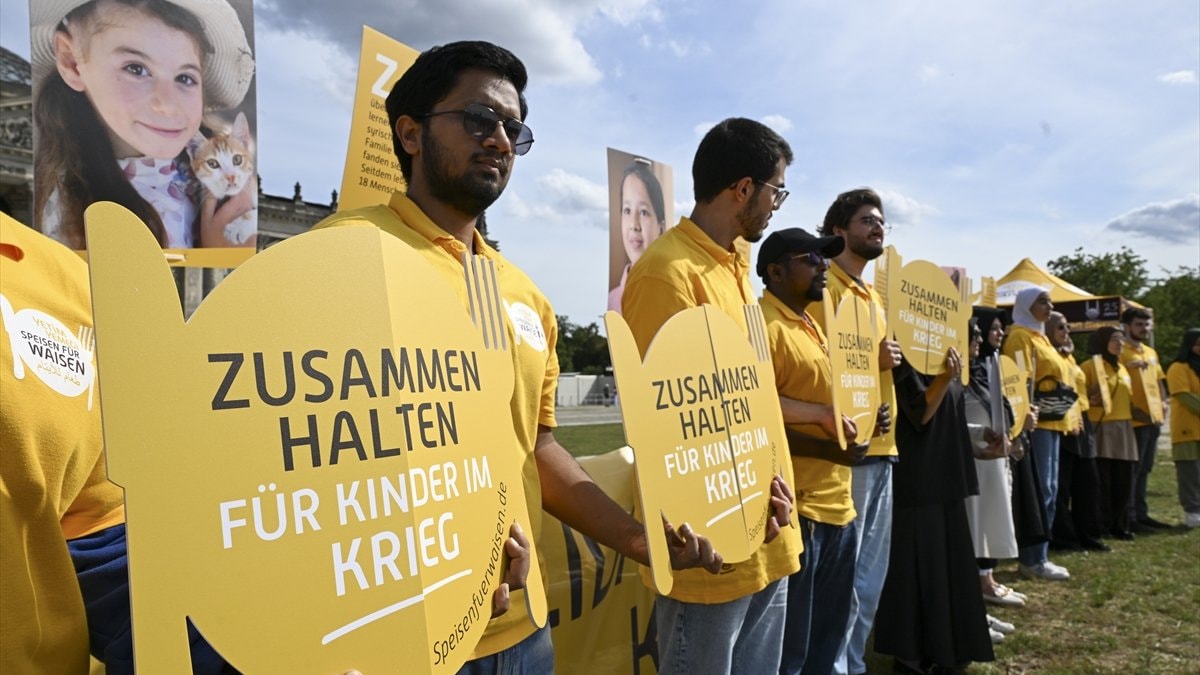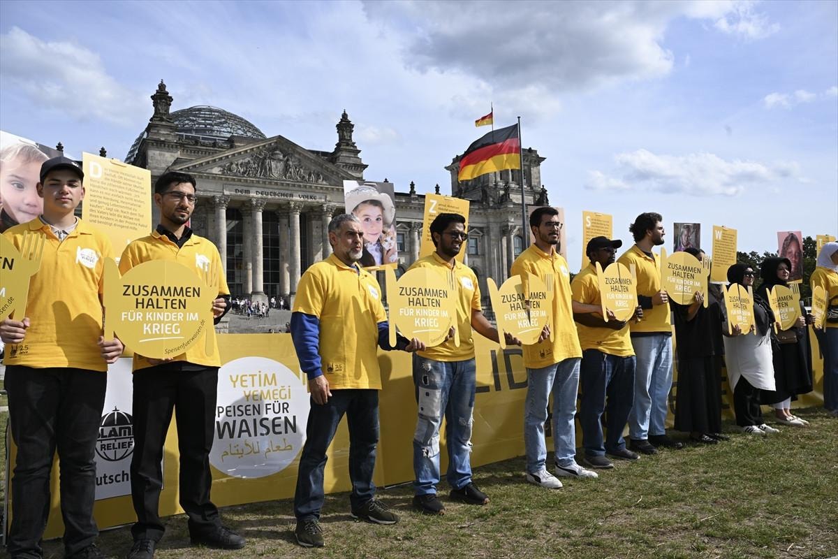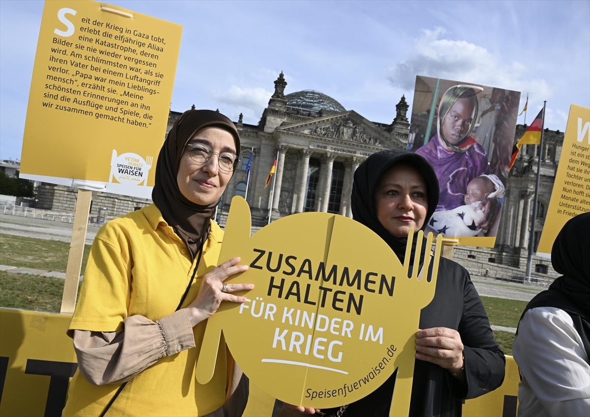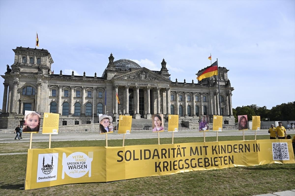 Islamic Relief yardım kuruluşu, başkent Berlin'deki Federal Meclis binası önünde savaş bölgelerinde mağdur olan çocukların durumuna dikkat çekmek için etkinlik düzenledi.