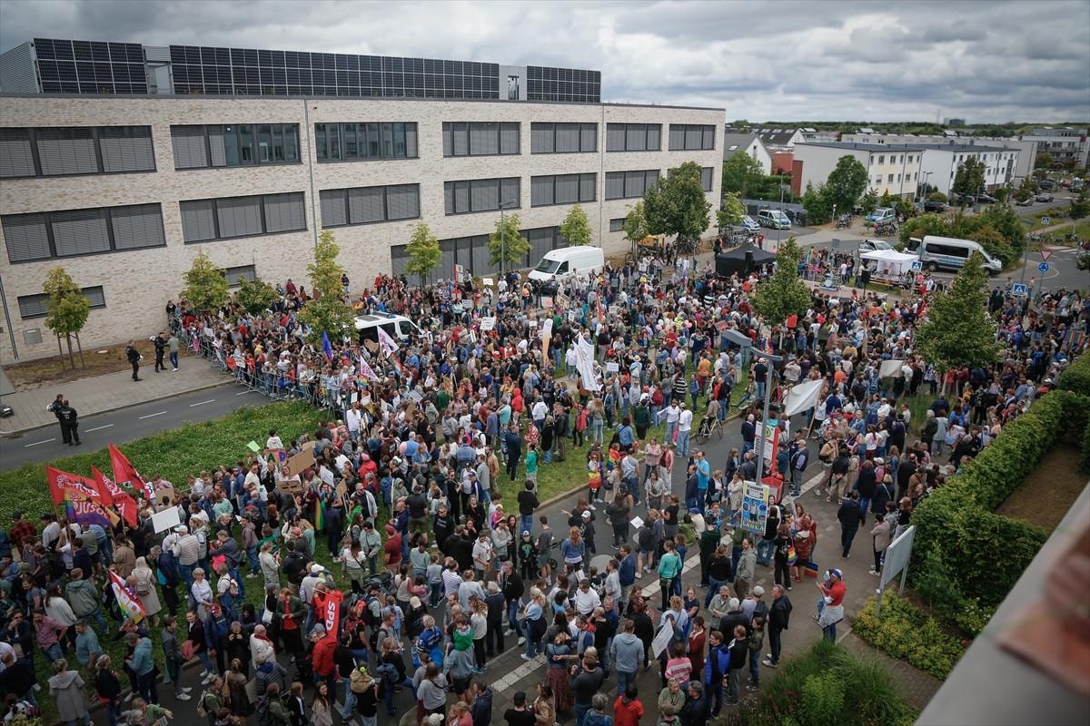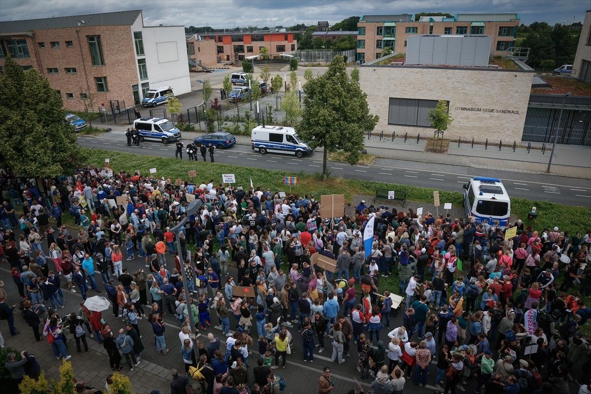Widdersdorf'taki Neue Sandkaul Lisesi'nde düzenlenen AfD'nin bölge parti konferansını protesto etmek amacıyla okulun önünde düzenlenen gösteriye yaklaşık 4 bin kişi katıldı.