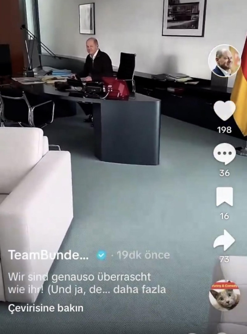 Almanya Başbakanı Scholz ise sosyal medya platformu X'ten TikTok etiketiyle yaptığı açıklamada, "Dans etmem. Söz." paylaşımında bulundu.