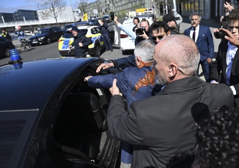Berlin'de katıldığı basın toplantısının ardından aracına yönelen İran'ın devrik Şahı Muhammed Rıza Pehlevi'nin oğlu Rıza Pehlevi'ye boyalı saldırı düzenlendi. Protestocu olay yerinde gözaltına alınırken, Pehlevi ise korumalar tarafından aracına bindirilerek olay yerinden ayrıldı.