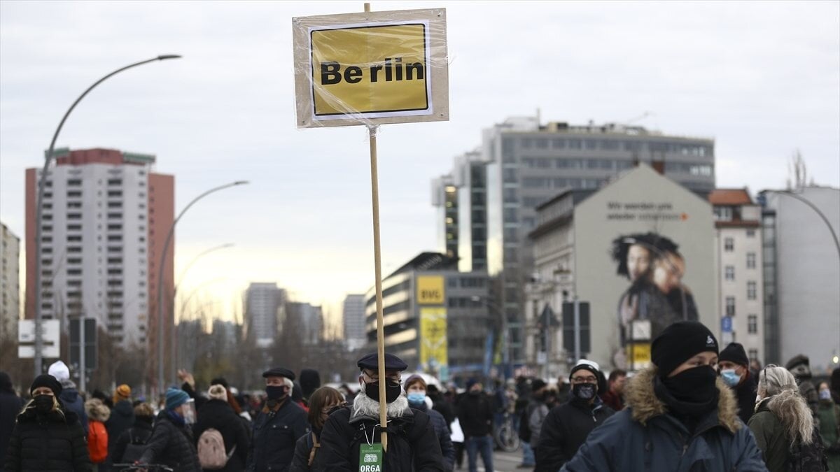Başkent Berlin’de “Ayrımcılığa karşı ve insan hakları için sessiz yürüyüş” sloganıyla düzenlenen gösteri çerçevesinde binin üzerinde kişi Kovid-19 tedbirlerini protesto etmek amacıyla Holzmarkt Caddesi üzerinde toplandı.