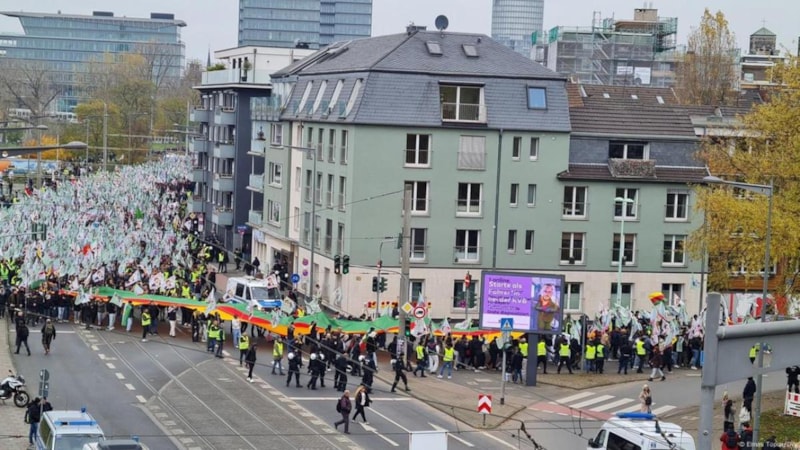 Terör örgütü PKK yandaşları Almanya'da paçavralarla dolu bir gösteri yaptı.