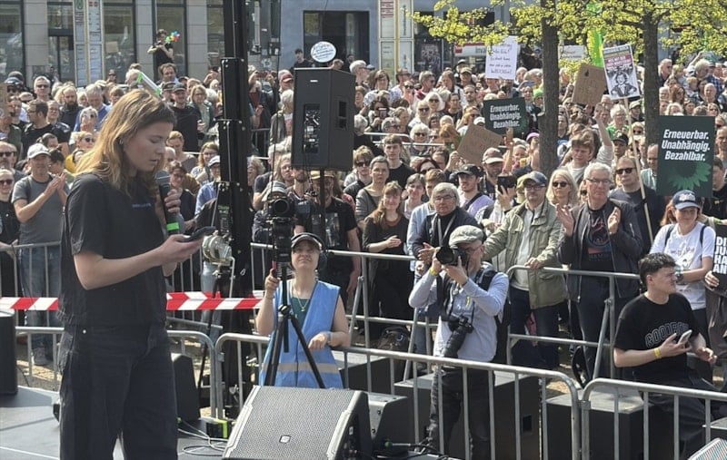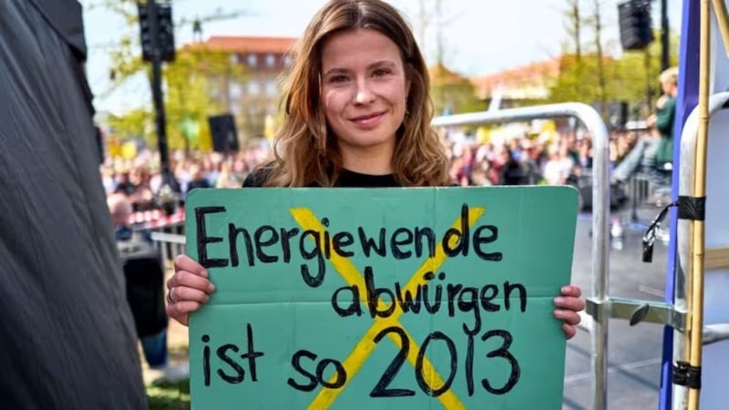 Eylemciler, Almanya Ekonomi ve Enerji Bakanı Katherina Reiche'yi, fosil yakıt fiyatlarının artmasına rağmen yenilenebilir enerji kaynaklarının yaygınlaştırılmasını engellemekle suçladı.