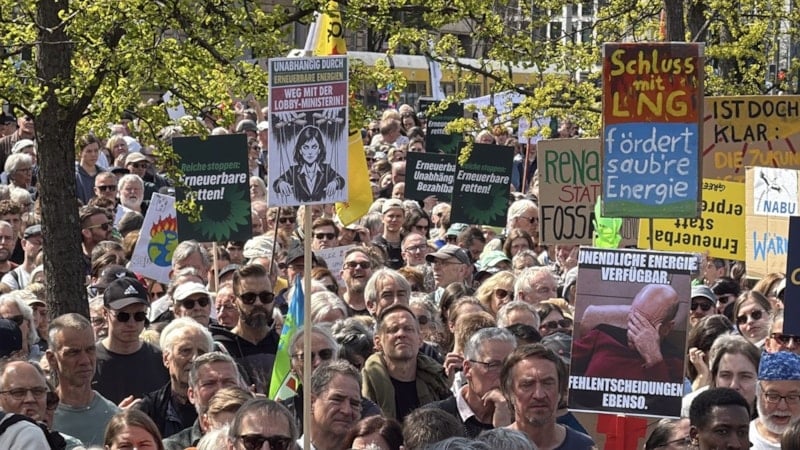 Eylemde, üzerinde "Yenilebilir, bağımsız ve uygun fiyat", "Yenilenebilir enerji eşittir enerji güvenliği", "Fosil Reiche lobi müzesine", "Gençler korkuyor", "Fosil tuzaktan çıkın", "Temiz enerjiyi destekleyin", "Kömürü durdurun", "Reiche'in hobisi olan gaz lobisini durdurun" ve "Yenilenebilir enerjiyle bağımsız olun, lobici bakanı kovun" yazan dövizler taşındı.