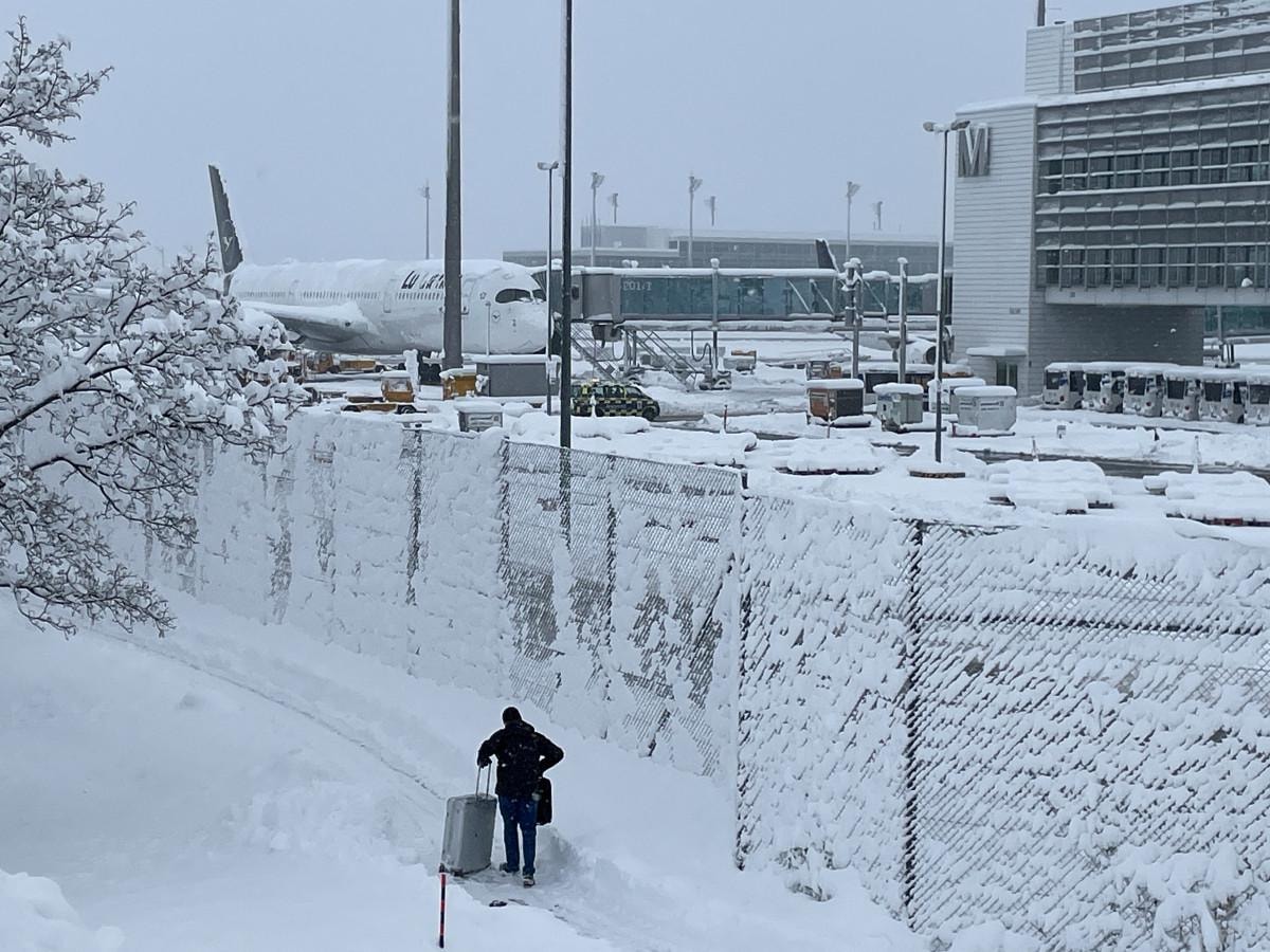 Kar yağışı nedeniyle Münih Havalimanı'ndaki 320 uçuş iptal edildi. Yolcular, havalimanında yoğunluk oluşturdu.