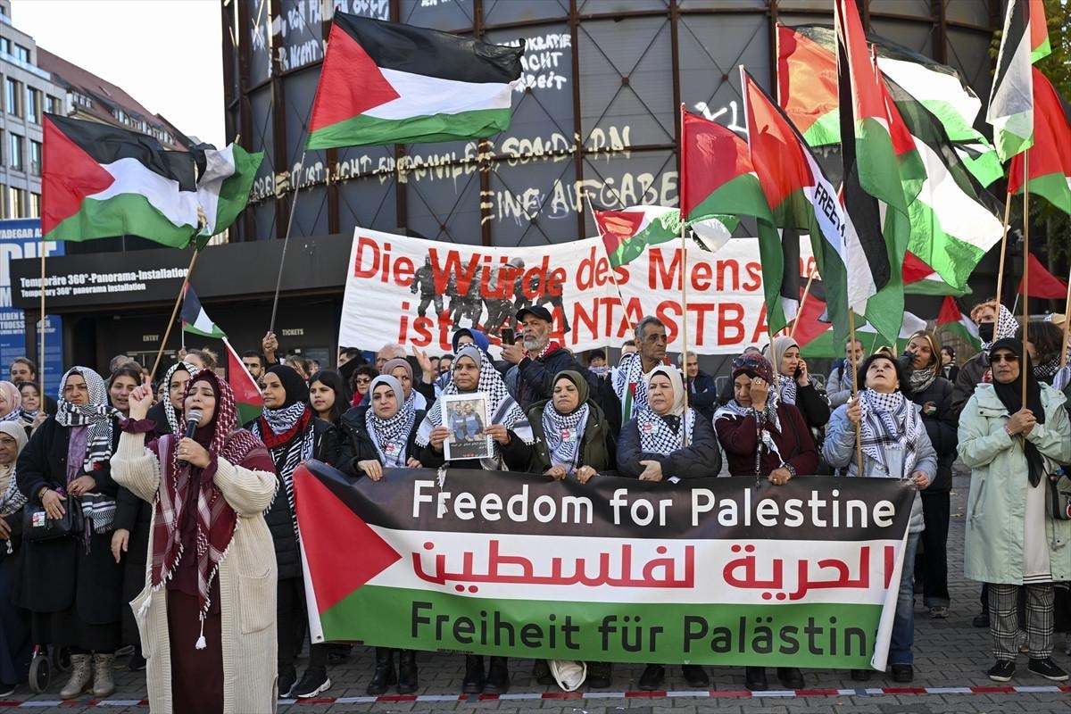 - Berlin'de Filistin'e destek amacıyla yapılan gösteride, çok sayıda kişi İsrail'i protesto etti ve Almanya'nın desteğinin kesilmesini talep etti.