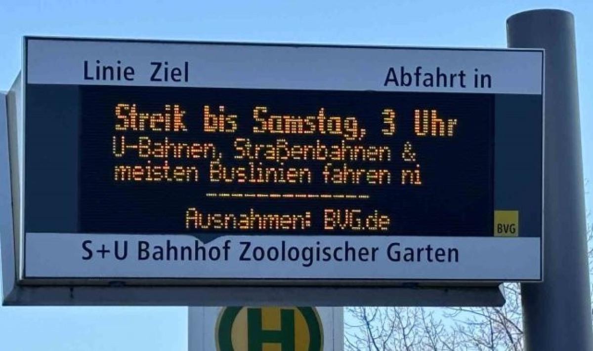 Berlin Ulaşım İşletmeleri (BVG) çalışanları, 48 saat sürecek grev kapsamında 21 Şubat saat 03:00 itibarıyla iş bıraktı.