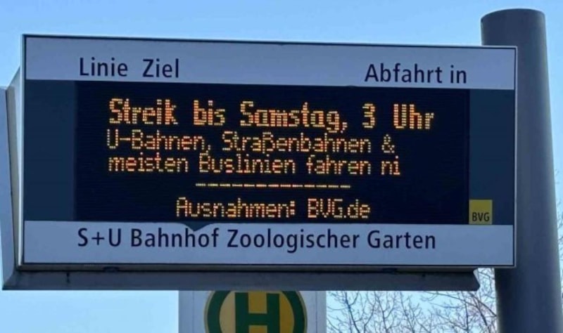 Almanya’nın başkenti Berlin’de toplu taşıma çalışanları, maaş ve çalışma koşullarındaki anlaşmazlık nedeniyle 48 saatlik greve gitti. Otobüs, metro ve tramvay seferleri durdu, kentte ulaşım büyük ölçüde aksadı.