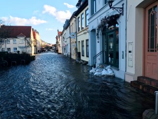 Almanya'nın Wismar şehrinde kötü hava şartları nedeniyle deniz seviyesi yükseldi. Yollar sular altında kaldı.