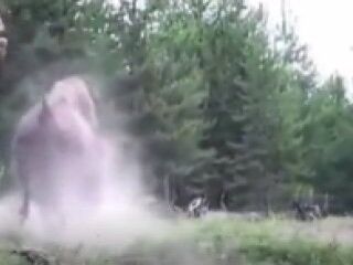 Amatör kameralarca kaydedilen görüntülerde, bizonun kız çocuğuna doğru koştuğu, kız çocuğunun saldırının ardından yere düştüğü görüldü.