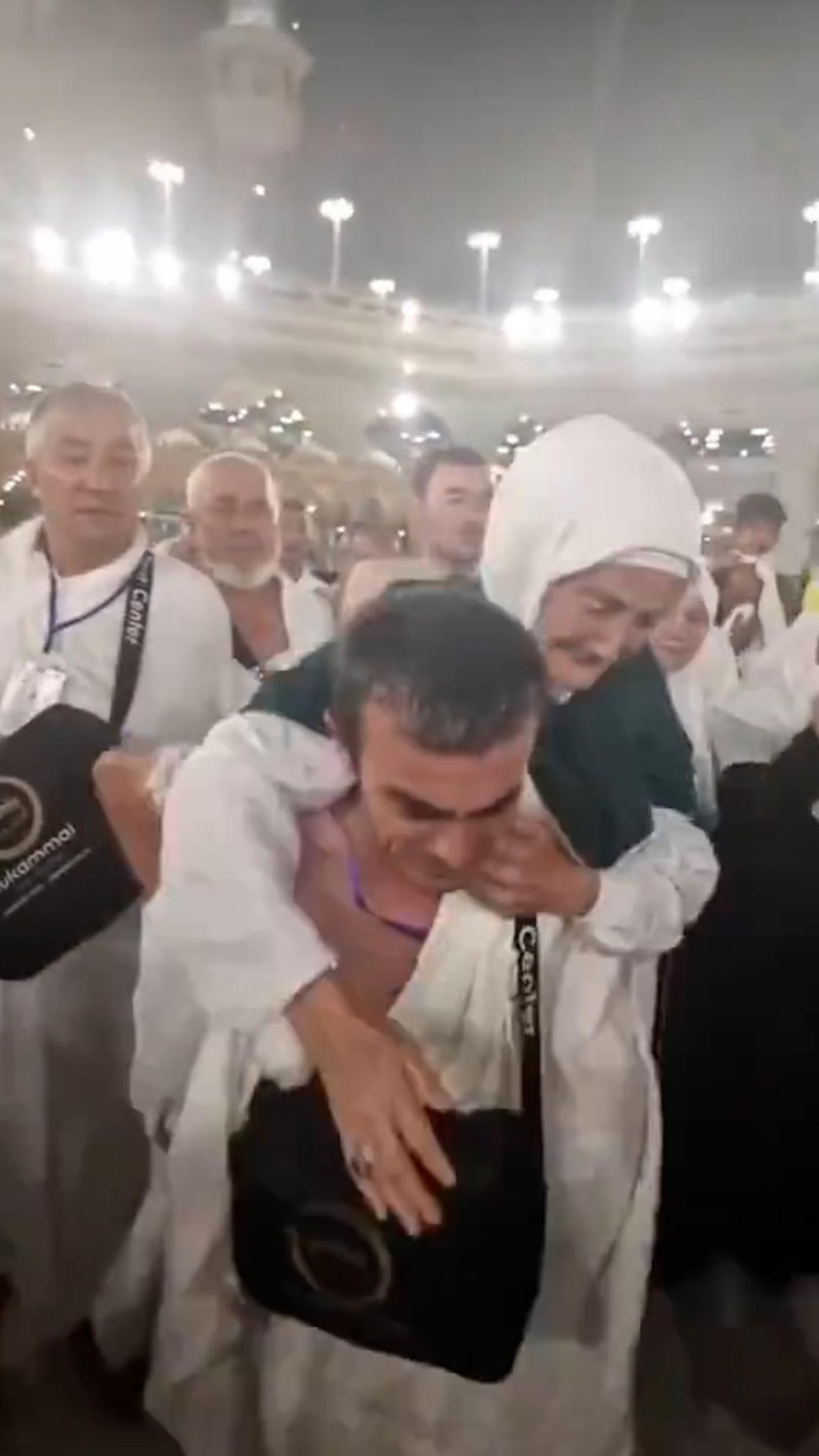 Hac vazifesini yapmak üzere Mekke-i Mükerreme’ye gelen bir adam, yaşlı annesini de kutsal topraklara getirdi.