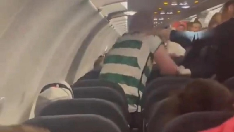 Kavgayı ayırmaya çalışan polis memuruna da saldıran yolcu, güçlükle uçaktan indirildi ve gözaltına alındı.