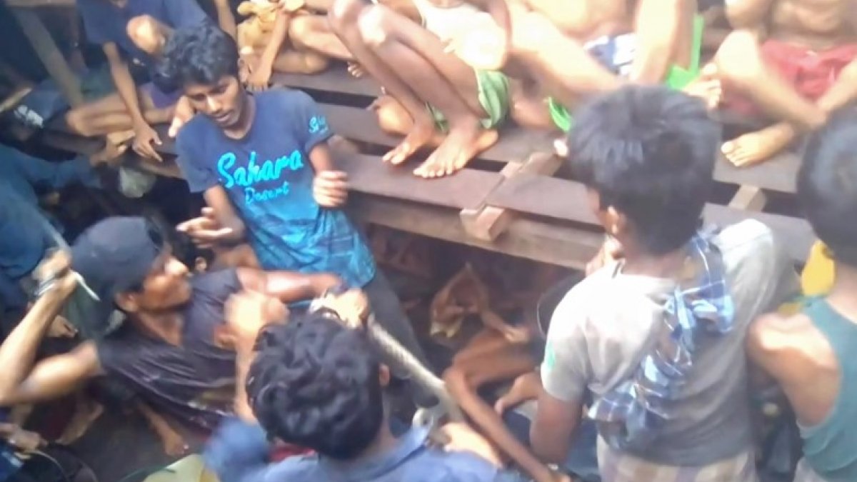 Bangladeş'ten Malezya'ya giden mülteci teknesinde kaçakçılarla mülteciler arasında çıkan tartışmanın ardından bir insan kaçakçısının kırbaç olarak kullandığı halatla mültecilere vurduğu görüldü.