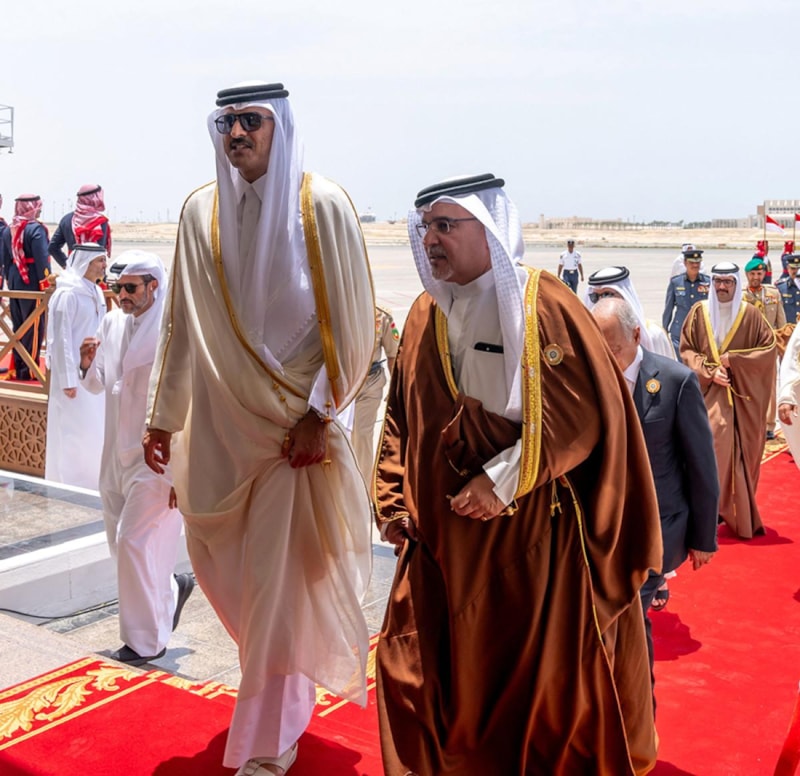 Kral Hamed, Arap Birliği Zirvesi'nin bu yıl, yıkıcı savaşlar, insani trajediler, Arap halklarının barış, güvenlik ve toprak bütünlüğüne yönelik tehditlerle karmaşık uluslararası ve bölgesel koşulların gölgesinde düzenlendiğini belirtti.