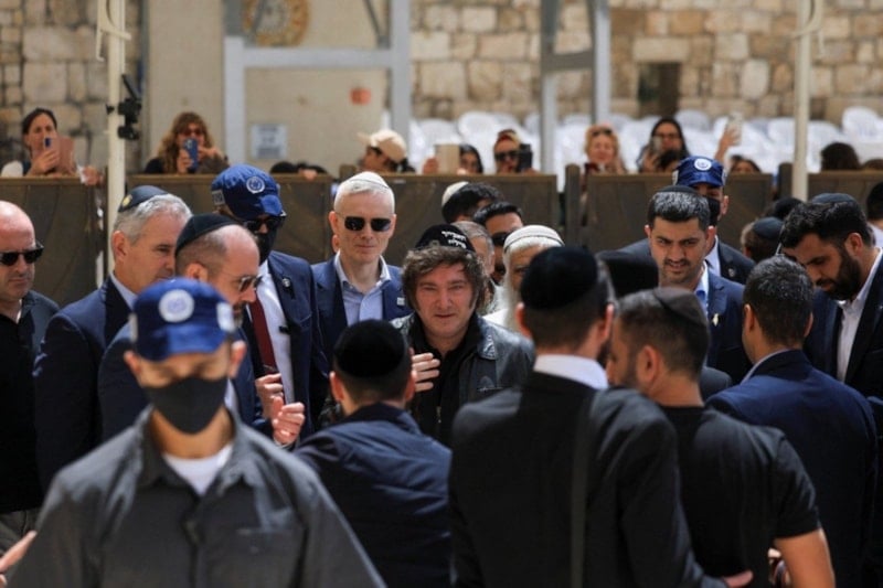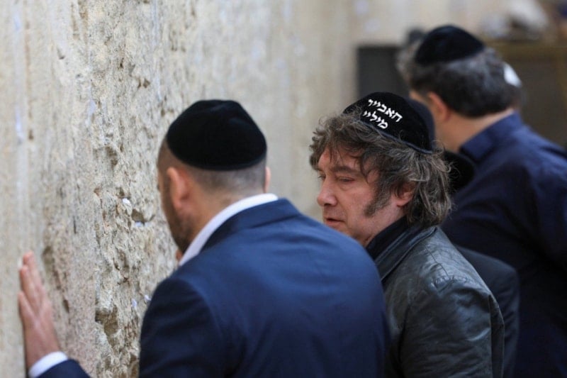 Milei, Kudüs'e iner inmez önceki ziyaretlerinde olduğu gibi hemen Ağlama Duvarı'nı ziyaret etti.