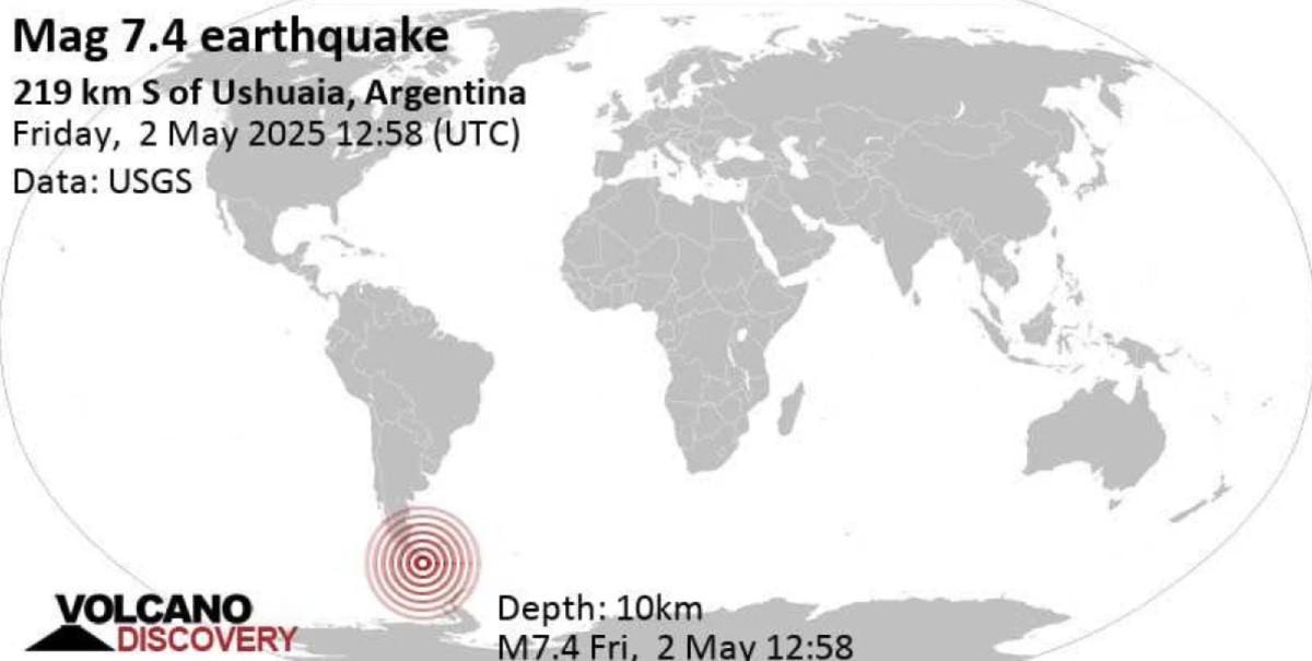 Arjantin’in güneyinde 7.4 büyüklüğündeki depremin ardından 6.6 ve 6.4 büyüklüğünde depremler meydana geldi.