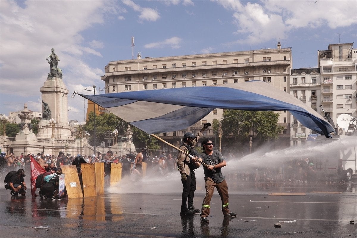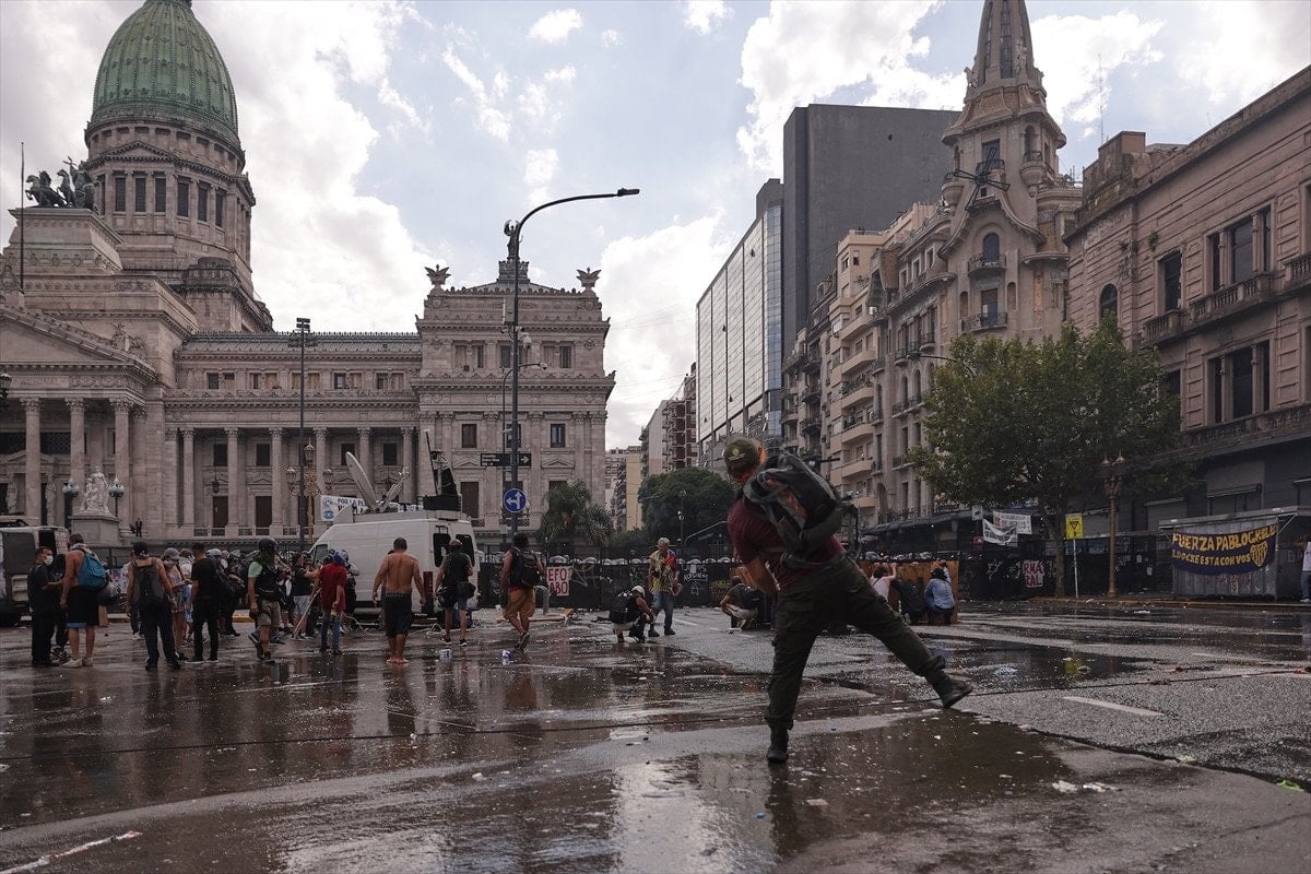 Sendikaların çağrısıyla başkent Buenos Aires’teki Kongre Meydanı’nda toplanan binlerce kişi, reform tasarısının ele alındığı Senato binasına yürümek istedi. Güvenlik güçlerinin yürüyüşe izin vermemesi üzerine taraflar arasında gerginlik çıktı.