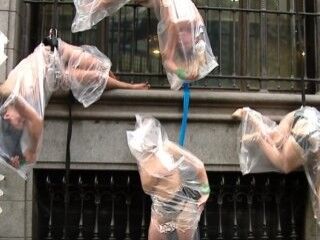Dün düzenlenen protesto gösterilerine, işçi sendikaları ve diğer feminist gruplar da dahil oldu. Hatta protestolar o kadar ileri gitti ki, bazı kadınlar kendini  ceset poşetleri içerisinde binaya astı.