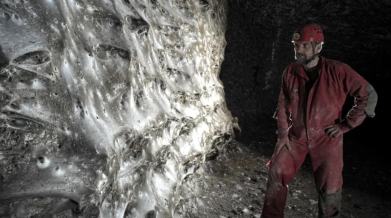 Avrupalı araştırmacılar, Arnavutluk-Yunanistan sınırında yer alan Kükürt Mağarası'nın derinliklerinde "dünyanın en büyük örümcek ağını" keşfetti.