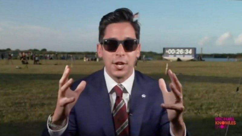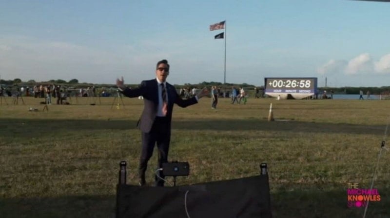 Muhafazakâr podcast sunucusu Michael Knowles, Artemis II fırlatmasının gerçek olduğunu göstermek için canlı yayında çimlere dokunup zıpladı.