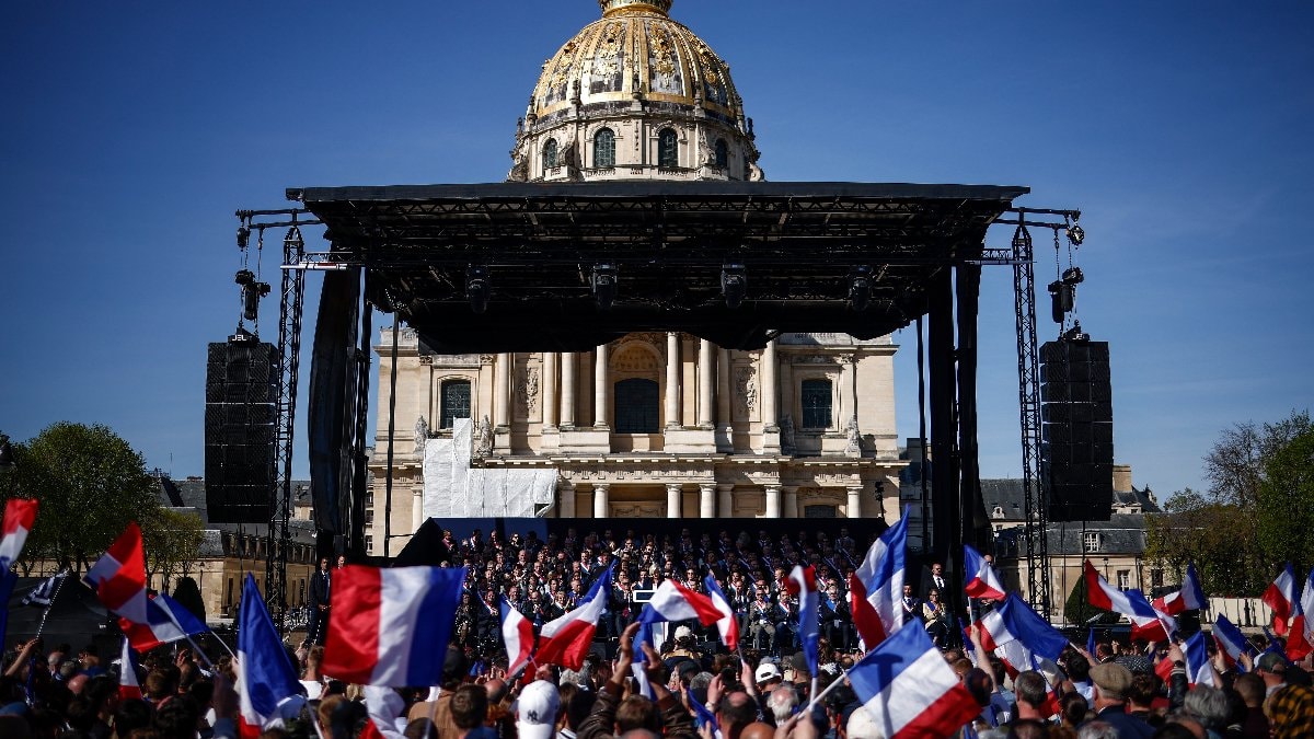 Le Pen destekçileri, ellerinde Fransa bayrakları sallayarak, "Kazanacağız" sloganları attı.