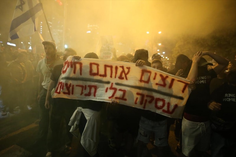 Gazze Şeridi'nde ateşkes, esir takası anlaşması ve Başbakan Binyamin Netanyahu hükümetinin istifası talebiyle sokağa inen İsrailliler ülke genelinde gösteriler düzenledi.
