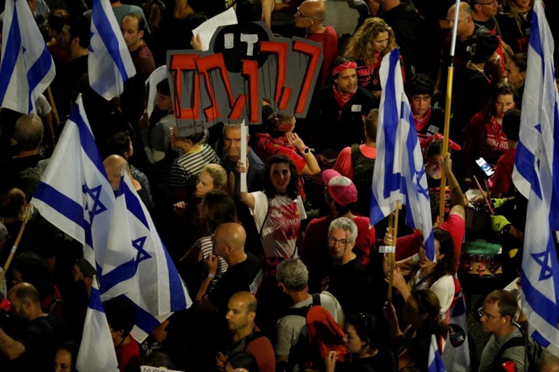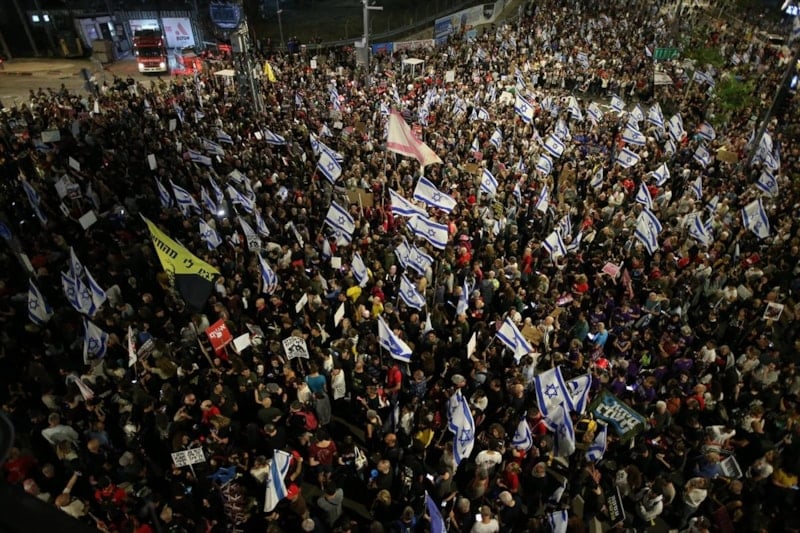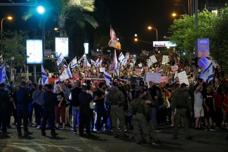 Hükümet karşıtı gruplara katılan on binlerce kişi, Gazze'ye saldırıların sonlandırılmaması ve esirlerin geri getirilmesi konusunda siyasi iradenin kayıtsızlığını eleştirerek ülke tarihinin en sağcı hükümetinin istifasını ve erken seçim talep ettikleri protestolarını yineledi.