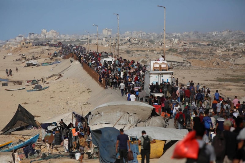 Gazze'de ateşkesin yürürlüğe girmesinin ardından güney bölgelerindeki zorla yerinden edilen Filistinliler, kuzeydeki evlerine dönmek için harekete geçti.